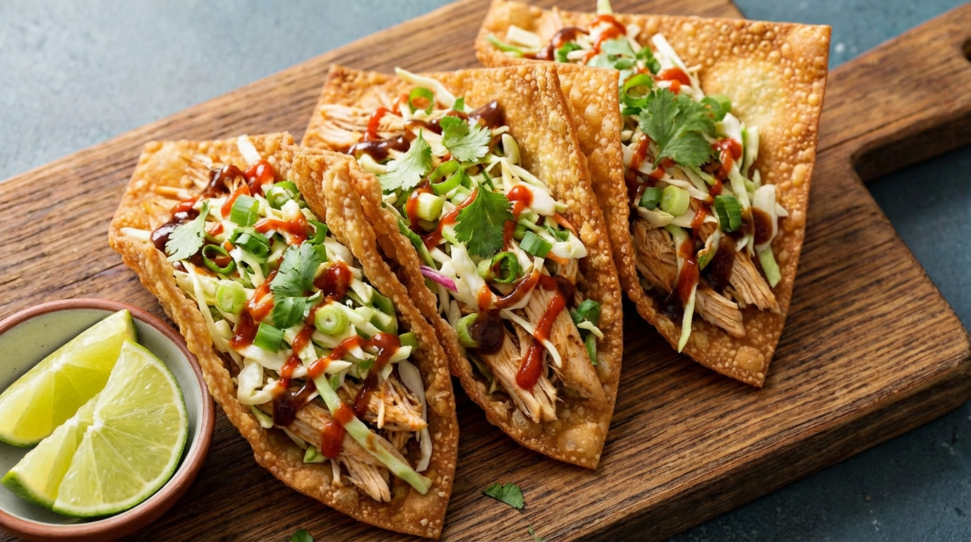 A1: The inspiration came from a desire to blend the crispy, savory charm of Asian wontons with the vibrant, handheld joy of tacos. It’s a fusion that brings together two beloved culinary worlds-east meets West-in one bite. The result is a crunchy, flavorful fiesta that’s as fun to eat as it is indeed appetizing.