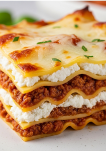 Savory layers crafted into a classic lasagna with ricotta & meat sauce evoke the warmth of Italian kitchens and the joy of sharing a comforting meal. Rooted in centuries of tradition, this dish combines creamy, fluffy ricotta layers with a richly spiced meat sauce, all hugged by pasta sheets that hold their shape thru the bake.Each bite captures the art of balance-texture,flavor,and substance harmonize to create a memorable dining experience that’s as satisfying to prepare as it is to eat.