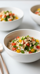 Savory congee Delight with Crunchy Oatmeal Topping Twist begins with the soul-soothing warmth of conventional rice porridge,elevated by the unexpected crunch of toasted oatmeal. This dish marries the creamy comfort of slow-cooked congee with inventive textures and vibrant flavors, creating a bowl that delights at every spoonful. Rooted in centuries-old Asian culinary traditions, congee has always symbolized nourishment and family gatherings.Here, the rich, silky base and the nutty oatmeal topping bring an exciting modern twist to a timeless classic.